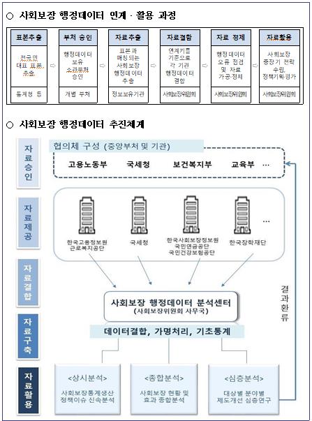 사회보장행정대이터는 다양하고 입체적인 분석 지원을 위해 전 국민의 20%에 해당하는 표본(약 1000만 명)을 추출하고 33개 기관, 800여 개에 해당하는 각종 행정자료를 가명처리해 개인 단위로 결합한 종합 행정데이터다.